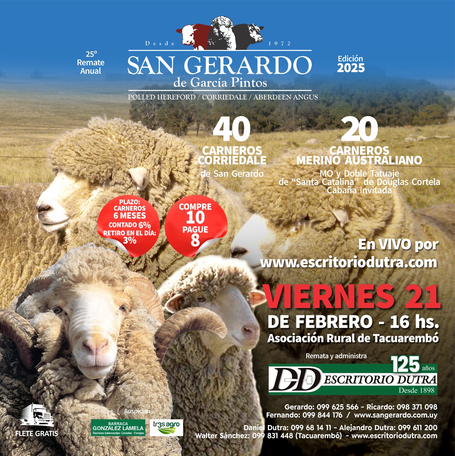 El quinto remate de la cabaña San Gerardo, de García Pintos, tuvo un significado especial este año. No solo se celebró con un éxito rotundo, logrando la dispersión total de la torada, sino que también se cumplió el cuarto año en el que "Agra", la matriarca, acompañó a su familia desde arriba... y tiró cuetes.[…]