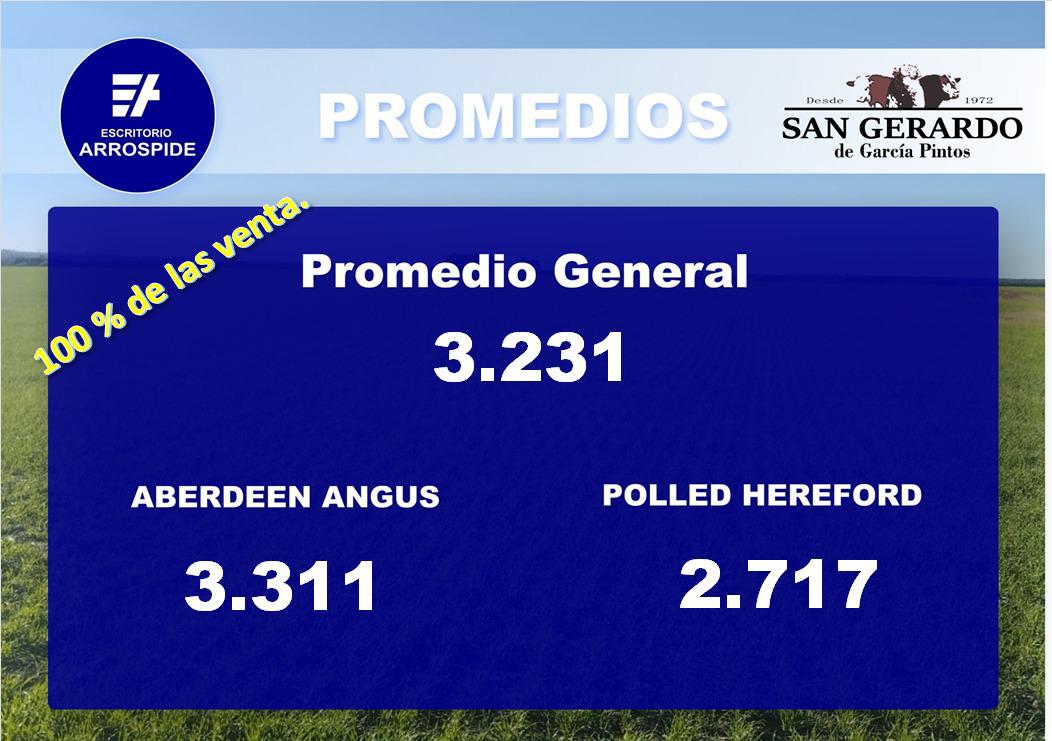 Este sábado la cabaña San Gerardo realizó la venta anual de sus toros Hereford y Aberdeen Angus, con ventas totales y muy buenos precios.El promedio general para los 40 toros comercializados fue de US$ 2.570, con los 25 toros Angus colocados a US$ 2.620 y los 15 Polled Hereford a US$ 2.490.
